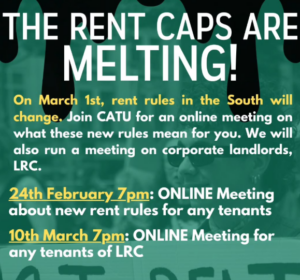 | Rent rules in the South are set to change on March 1st, and with that in mind, CATU will be hosting a couple of important online info sessions. |